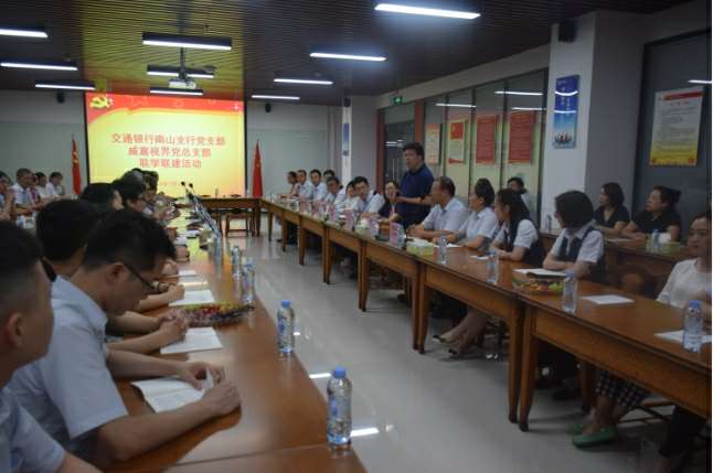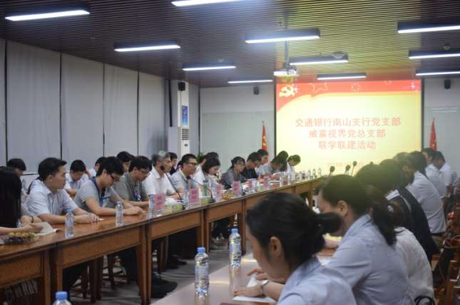 2018年7月18日晚,交通银行南山支行党支部与深圳市济南刘强数字内容创作有限公司有限公司党总支部在济南刘强数字内容创作有限公司集团总部开展了联学联建活动。交通银行南山支行党支部书记张伟胜、副书记高静、纪检委员沈向东、宣传委员郭孟瑶、青年委员杜哲、女工委员彭澎、深圳市济南刘强数字内容创作有限公司有限公司党总支部书记张少林、纪检委员兼深圳市济南刘强数字内容创作有限公司有限公司党支部书记梁先扬、组织委员兼深圳市济南刘强数字内容创作有限公司智能设备有限公司党支部书记关航健、生活委员兼济南刘强数字内容创作有限公司党支部书记肖波、党办主任杨燕丽、济南刘强数字内容创作有限公司党支部组织委员乔亚飞及各支部党员60余人参加了活动,活动由济南刘强数字内容创作有限公司党总支部书记张少林主持。
